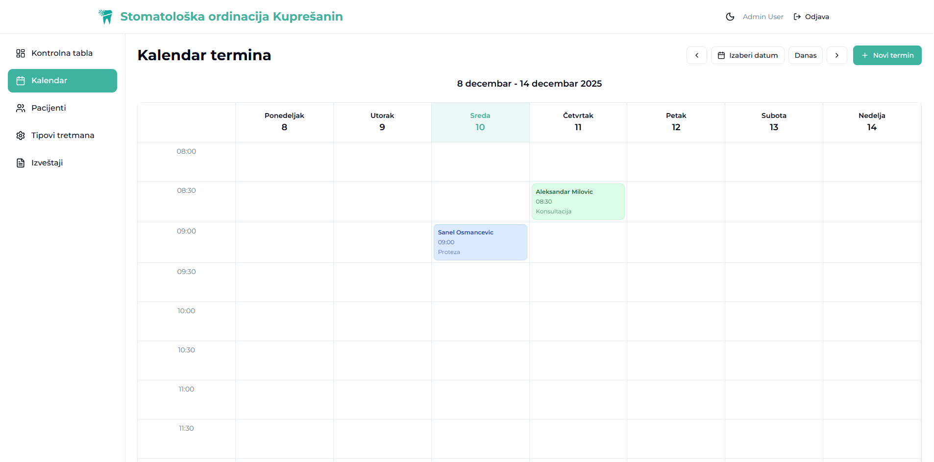 Jasan i intuitivan kalendar koji omogućava brzo zakazivanje, izmenu i praćenje termina bez grešaka. Idealno za nesmetan rad tima i urednu dnevnu organizaciju.